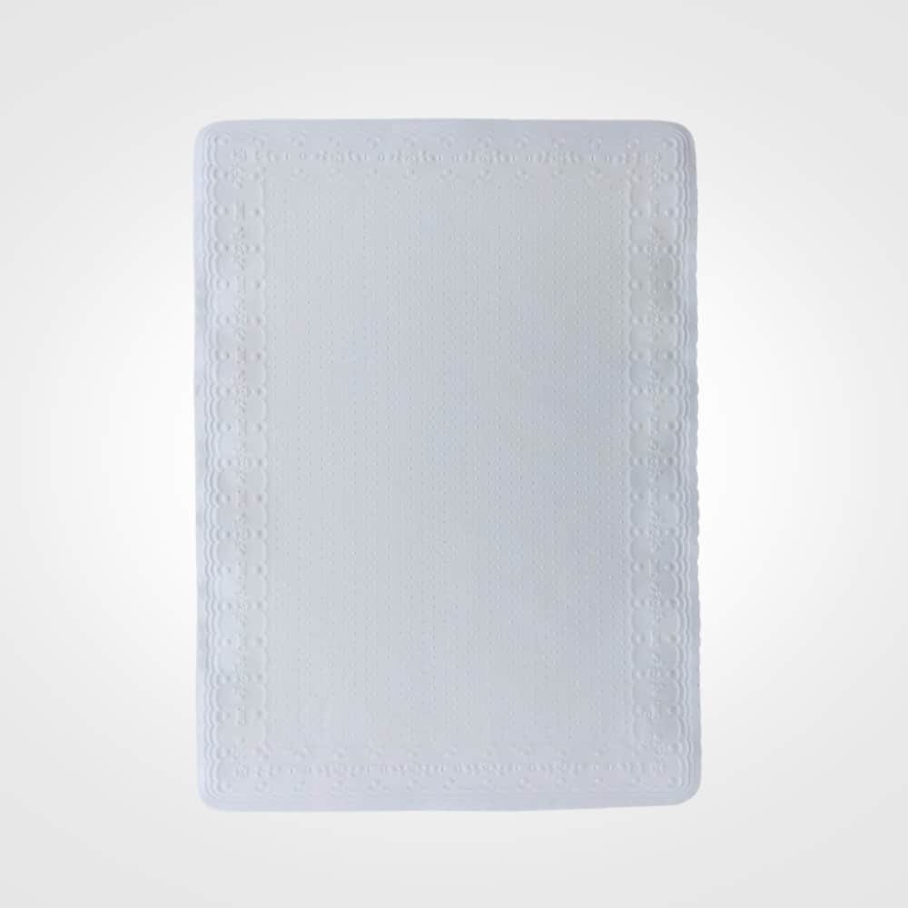Nosso jogo americano é um produto clean. Seu fundo branco proporciona um ar de limpeza, além de visualmente dar mais destaque para seu jogo de jantar, mostrando mais os detalhes da louça e dos talheres.